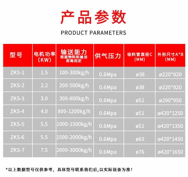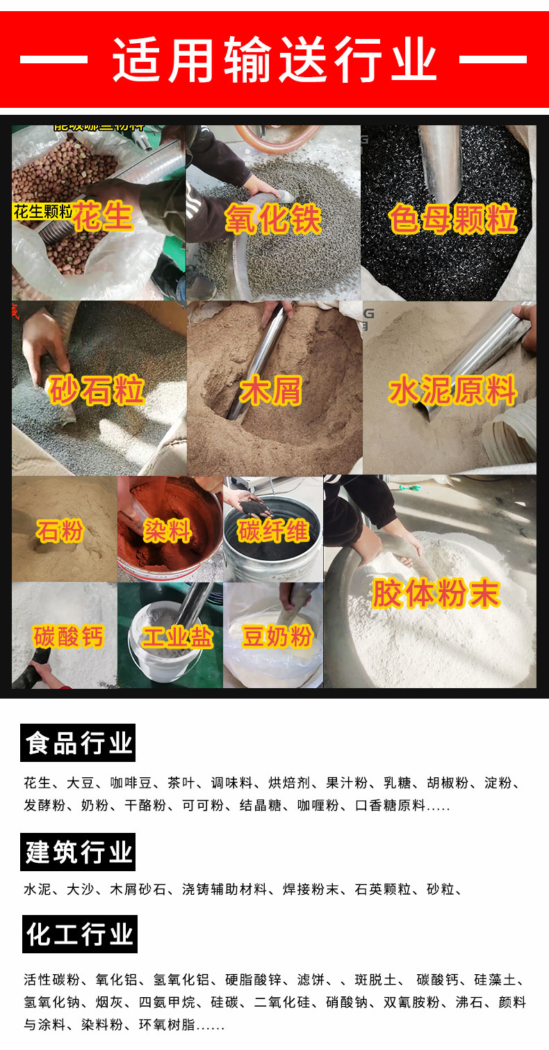 【物料要求】:粉末,顆粒類物料均可以輸送,一般粒度在400目-3cm之間為宜